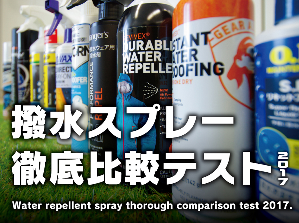 レインウェアに防水スプレーを吹き付け