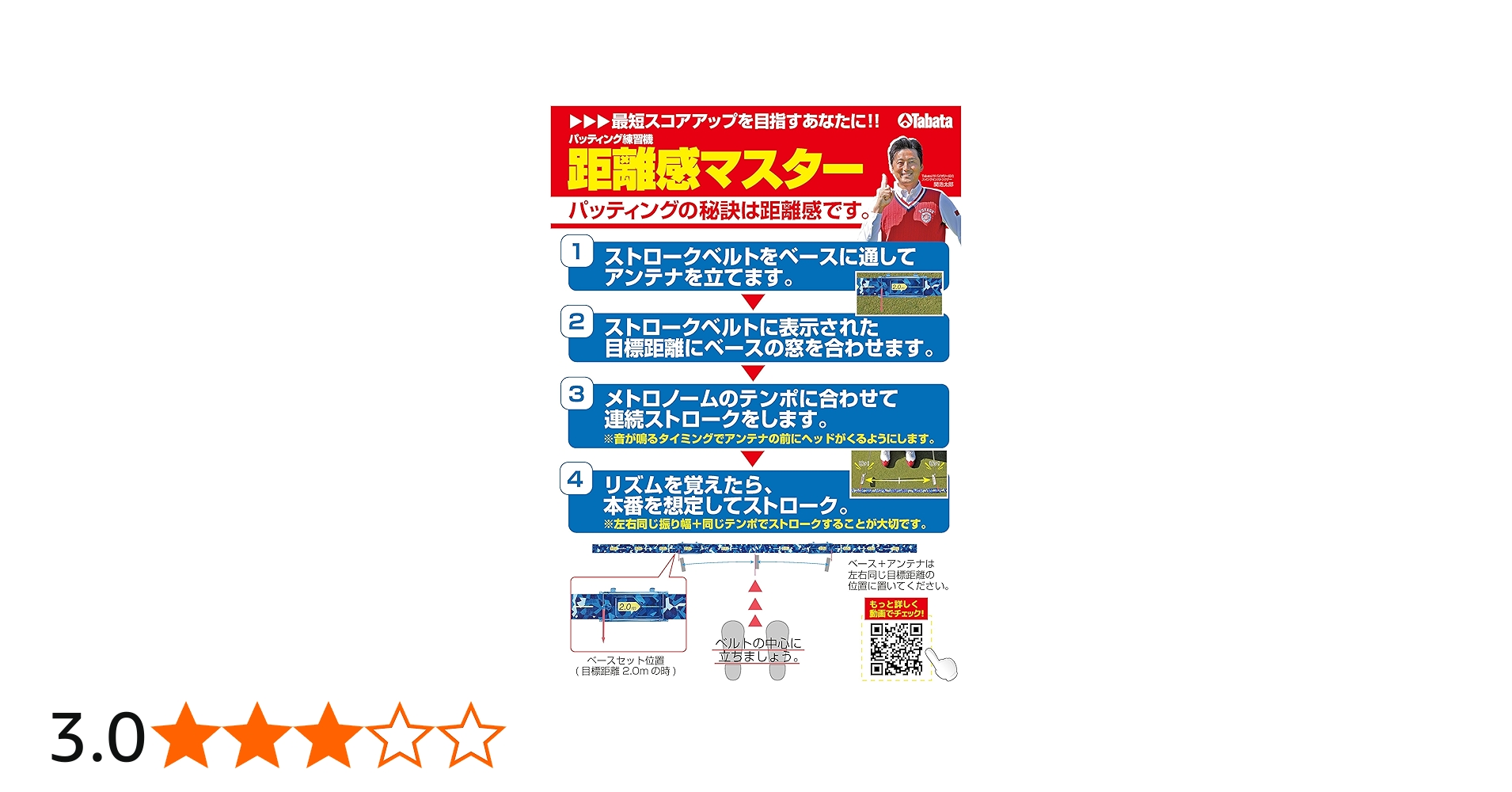 そんな悩みの中、近くの二木ゴルフで見つけた練習器具が、「タバタ パットを極める 距離感マスター」です。