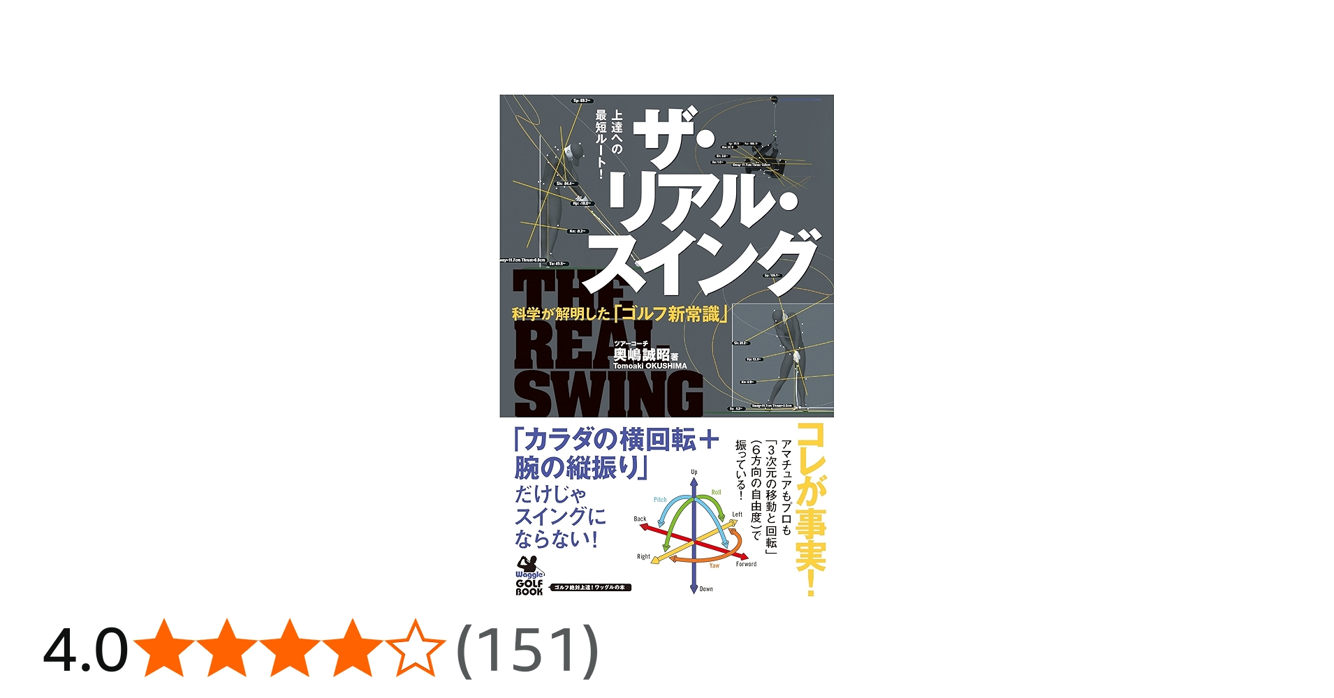 『ザ・リアルスイング』でも回転方向は1つではなく、「6方向の自由度」で考えると書かれています。これは『驚異の反力打法』で書かれていた「垂直軸」「前後軸」「飛球線方向軸」の3つの軸による考え方を当てはめると6方向の説明に繋がっていると思います。